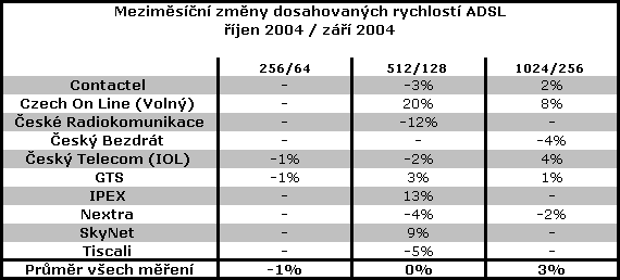 Následující tabulka ukazuje meziměsíční změny rychlostí ADSL.