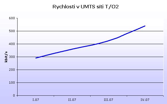 V rámci mobilního internetu je zajímavé postupné zvyšování průměrných rychlostí UMTS sítě T/O2 od začátku letošního roku. Trend potvrzuje následující graf.