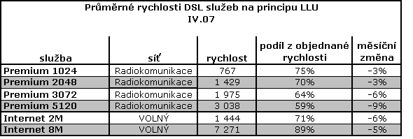Jak již bylo v minulosti zmíněno, uživatelé služeb Premium od Radiokomunikací nebudou automaticky migrováni na vyšší rychlosti. Bude proto nějakou dobu trvat, než nově nabízené nejrychlejší DSL v ČR o nominální rychlosti 10 Mbit/s bude mít dostatek zákazníků, jejichž měření rychlostí internetu na měřáku DSL.cz bude možné vyhodnotit.