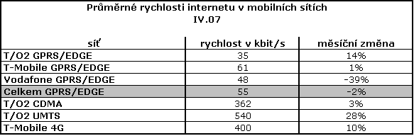Rychlosti všech dostupných typů mobilního internetu v ČR ukazuje následující tabulka.
