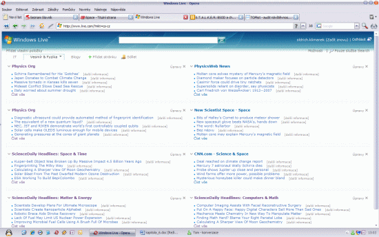 Stránku si taky můžete rozdělit do několika tematických záložek (třeba Zábava, Zprávy, Sport, Blogy, IT..., záleží na vás) a mít tak pohromadě přehledně utříděné oblíbené zdroje informací. Více zde.
