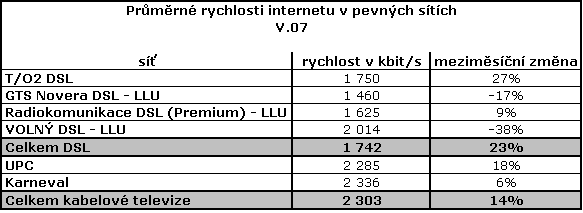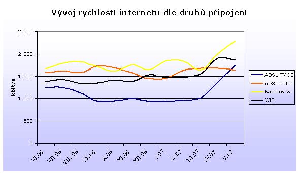 Všechny hlavní druhy internetového připojení zaznamenaly v posledních měsících výrazné zrychlení. Výjimkou je pouze DSL na principu pronájmu místní smyčky (LLU), kde se dosahované rychlosti téměř nemění. Následkem bude pravděpodobné snížení tržního podílu DSL na principu LLU na celkovém trhu s DSL připojením. Dojde tak k ještě většímu posílení dominance Telefóniky O2 (T/O2) v DSL službách.