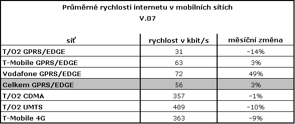 V dosahovaných rychlostech v mobilních sítích nedošlo k velkým meziměsíčním rozdílům. Výjimkou je GPRS/EDGE síť Vodafonu, ale zde je rozdíl způsoben relativně malým počtem dostupných měření, což je důsledkem nízkého počtu klientů s mobilním internetem u tohoto mobilního operátora.