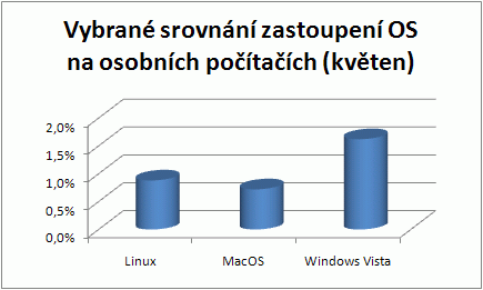 Podíváte-li se na globální statistiky uvedené například na toplist.cz a budete-li je nějakou dobu sledovat, dojde k zajímavým číslům. Zatímco Linux se pohybuje kolem průměrné hodnoty zhruba 0,8 – 0,9 %, Windows Vista poskočily na 1,6 – 1,7 %. Jinými slovy, zastoupení Windows Vista, které podle aktivních linuxových nepřátel komerčního softwaru jsou propadákové a hrůzostrašné, se zdvojnásobilo. Windows Vista jsou teď nainstalované na dvojnásobném počtu počítačů s připojením k internetu než v dubnu.