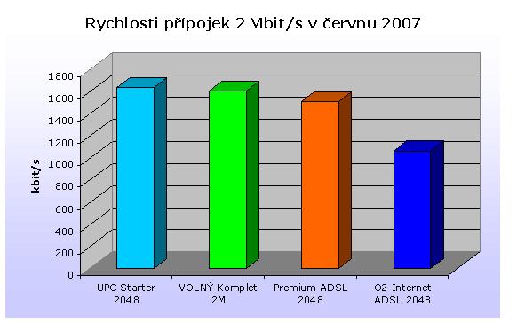 Uvedená tabulka obsahuje srovnání průměrných rychlostí jednotlivých poskytovatelů, ale není z ní zřejmé, jak se liší skutečně dosahované rychlosti od rychlostí uvedených v názvu služeb. Porovnání skutečně dosahovaných rychlostí na přípojkách s nominální hodnotou 2 Mbit/s, které jsou u většiny poskytovatelů internetu suverénně nejprodávanější, je zřejmé z následujícího grafu.
