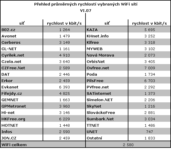 Naměřené rychlosti v bezdrátových sítích zaznamenaly oproti minulému měsíci další vzestup, který byl však částečně ovlivněn novou metodikou výpočtu. Změna způsobu výpočtu průměrných rychlostí bezdrátových sítí spočívá ve změně kritérií pro zahrnování výsledků jednotlivých měření do výpočtu.