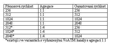 garantovanou přenosovou rychlostí, která se vždy rovná rychlosti