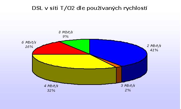 Protože již byly téměř dokončeny migrace na vyšší rychlosti DSL v síti T/O2, tak je možno poměrně přesně určit podíly počtu DSL přípojek v ČR dle využívaných nominálních rychlostí. Graf vychází z počtu měření rychlostí na měřáku DSL.cz.