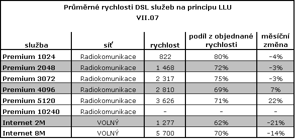 Graf jasně ukazuje, že se v poslední době ztratila jedna z podstatných výhod DSL služeb na principu LLU ve srovnání s DSL v síti T/O2 z minulosti, kterou bylo portfolio atraktivních DSL služeb s vyššími rychlostmi. Tím negativní zprávy pro příznivce DSL na principu LLU jako alternativy k nejvíce prodávaným O2 Internet ADSL nekončí. V poslední době se stále zvětšuje počet oblastí, kde nelze zřídit DSL na principu LLU od Radiokomunikací (služby Premium). Důvodem je postupné zaplňování kapacit stávajících DSLAMů, které nejsou včas rozšiřovány.
