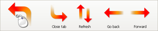 Pro surfování po webu je někdy otravné využívat klávesové zkratky či fádní tlačítka v lištách… myš přece musí stačit, řekli si autoři, a vytvořili „myšo-pohybové zkratky“, které díky stisku pravého tlačítka a daného pohybu provedou několik základních úkonů. Tyto gesta opět lze nastavovat dle potřeb a chtíčů.