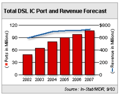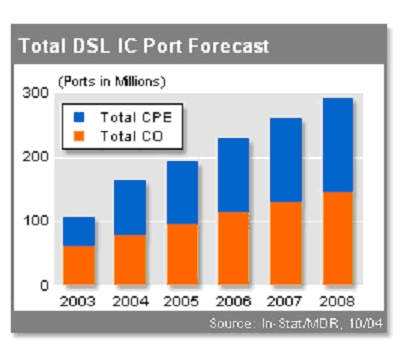 Trh s DSL se celosvětově pomalu ale jistě přesunuje z dominantních implementací asymetrické technologie ADSL směrem k rychlé a modernější variantě VDSL. Ještě v roce 2003 prakticky 90% objemu trhu s integrovanými obvody pro DSL tvořily právě dodávky pro ADSL (dohromady přinesly 86% příjmů trhu s integrovanými obvody pro xDSL).