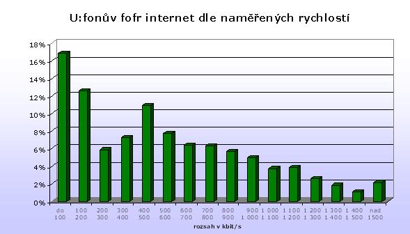 V současné době stále patří k nejsledovanějším operátorům U:fon, a proto se nejprve podrobněji podíváme na strukturu dosahovaných rychlostí u nejvíce prodávané služby U:fonův fofr internet.