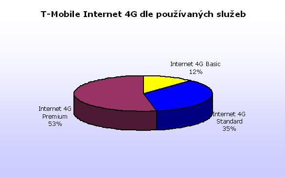 Jak bylo uvedeno na začátku, podle počtu měření na měřáku DSL.cz se z hlediska prodejů u zákazníků velmi dobře daří službám Internet 4G od T-Mobilu. Jejich průměrné rychlosti dosahují zhruba poloviční hodnoty oproti maximálním rychlostem, které T-Mobile uvádí v popisu služeb. Je zajímavé, že u mobilních operátorů jsou na rozdíl od DSL vyhledávanější spíše rychlejší, tj. dražší služby. Potvrzuje to i následující graf vycházející z četností měření jednotlivých typů služeb od T-Mobile, kdy se jako nejvíce používaná jeví nejrychlejší služba Internet 4G Premium.