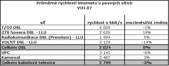 Po navyšování v minulých měsících se rychlosti DSL i kabelového internetu ustálily. Dá se předpokládat, že průměrné rychlosti DSL okolo úrovně 2 Mbit/s a kabelového internetu blížící se hodnotě 3 Mbit/s nějakou dobu zůstanou bez výraznějších změn.