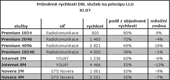 rychlosti kvůli vlivu FUP pohybují pod úrovní poloviny objednaných hodnot.DSL přes LLU