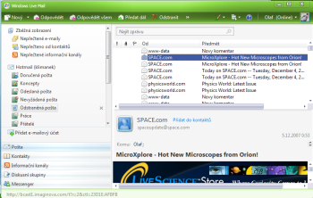 Další funkcí WL Mail je čtečka RSS zpráv. Výborné pro všechny, kdo nechtějí, aby jim zvlášť běžely aplikace pro poštu a RSS. Díky integrované RSS čtečce budete mít v WL Mailu přehled nejen nad svou poštou, ale i články z oblíbených zdrojů.