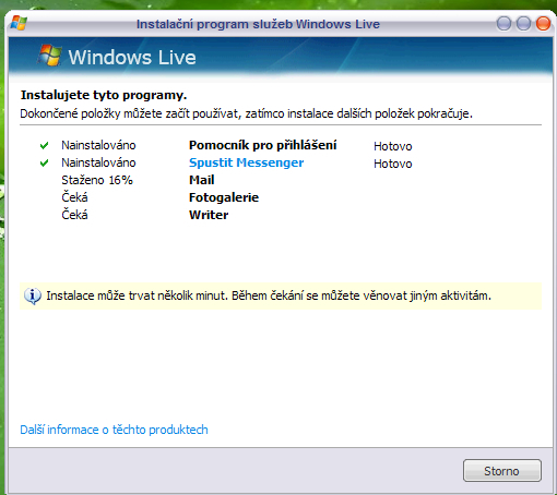 Instalace probíhá online, to znamená, že abyste si produkty Windows Live mohli nainstalovat, váš počítač v tu chvíli musí být připojený k internetu. Pokud byste si například stáhli ze stránek Windows Live Messengeru jeho nejnovější verzi (8.5), nedostali byste jen jeho instalátor, ale opět byste byli vyzváni k výběru instalace i dalších aplikací. To, co si nainstalujete, záleží jen na vás. Nicméně všechny aplikace stojí za vyzkoušení.