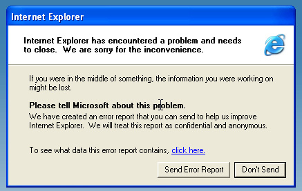 Internet Explorer 6 v XP SP3 spolehlivě padá.