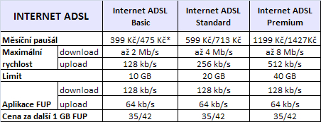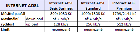 - Internet ADSL již od 399 Kč bez DPH (475 Kč s DPH).