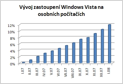 Finální verze Windows Vista byla dokončena koncem roku 2006 a na trhu se objevila koncem ledna 2007. Od té doby si k letošnímu lednu Visty ve světě získaly 12% podíl na trhu operačních systémů (u nás necelých 7 %; více v nedávném přehledu statistik). Microsoft sice považuje jejich prodejnost za velice dobrou (100 milionů kopií je opravdu dobrý výsledek), ale kýžených 70 % si v červnu z koláče ukousnou jen těžko (tak zněly první předpovědi či spíše přání). V tu dobu by Windows XP měly mít už jen 20% podíl, ovšem podle reakcí uživatelů to vypadá na pravý opak; jak se zdá, i v červnu budou zavedená „XPéčka“ stále jedničkou. Jestliže si máme tipnout, tak pokud Windows Vista budou růst touže měrou, v červnu budou nainstalované na zhruba 19 % počítačů. Každopádně se zdá nepravděpodobně, aby se v té době jejich zastoupení vyhouplo výrazně nad 20 %. Vždyť podíl ve výši 70 % si Windows XP získaly až kolem roku 2005 ― vydány přitom byly už v roce 2001. A musíme uznat, že skok mezi Windows 98, potažmo Windows Millenium, a Windows XP byl neporovnatelně větší než mezi XP a Vistami.