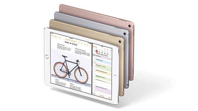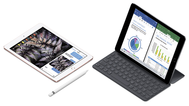 Zde došlo víceméně k potvrzení již delší dobu zmiňovaných spekulací v podobě zmenšené verze 12,9palcového iPadu Pro. Nový 9,7palcový iPad Pro obsahuje téměř identické parametry a vlastnosti jako 12,9palcový iPad Pro. Jeho výkon je však mnohem vyšší a tím dokáže převálcovat většinu notebooků. To se však nepodepíše na výdrži jeho baterie. Ta díky čipu A9X vydrží až 10 hodin. Součástí tabletu je 12 mpx fotoaparát iSight, se kterým stejně jako u iPhonu SE zachytíte 4K videa i Live Photos.