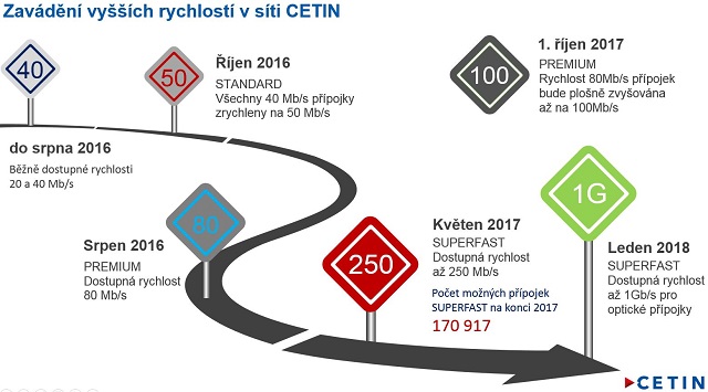 Česká telekomunikační infrastruktura CETIN od 1.1. 2018 navýší rychlost internetu v optických přípojkách. Více než 90 tisíc bytových jednotek už má možnost využívat rychlost 250 Mbit/s, ostatní si zatím musejí počkat.