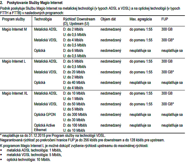 Slovak Telekom výjimku na VDSL internet neprodloužil a podle nového ceníku platného od 1. 1. 2016 datový limit aplikuje na všechna DSL připojení. Pokud na Slovensku překročíte měsíční limit, rychlost internetu se sníží na 256 Kb/s pro stahování a 128 Kb/s pro odesílání dat. Stejné podmínky zavedl i druhý největší slovenský ADSL poskytovatel Orange, který využívá infrastrukturu slovenského Telekomu.