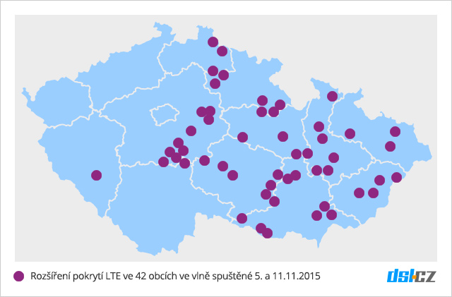 Operátor O2 i nadále pokračuje v pokrývání nejrychlejším mobilním internetem LTE. V listopadu operátor nově pokryl 159 obcí po celé České republice. Jednotlivé vlny pokrývání jsme vám zanesli do čtyř názorných map.