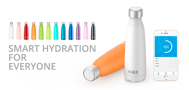 Čínská společnost Moikit představila ve dvanácti barvách a třech různých velikostí chytrou láhev Seed, jejíž design mne zaujal nejvíce. V příslušné aplikaci si uživatel zadá svou váhu a fyzickou aktivitu a aplikace se přizpůsobí dennímu plánu. Pokud zanedbáváte pitný režim, víčko na láhvi začne vibrovat a na LED obrazovce se ukáže upomínka. Při dotknutí víčka se také na obrazovce ukáže teplota vody a denní statistika dodržování určeného cíle.