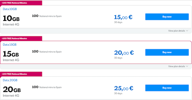 SIMku od tohoto poskytovatele koupíte přímo v jeho obchodech nebo online se zasláním na španělskou adresu. V obou případech je cena 10 EUR, součástí je i kredit ve stejné hodnotě. Dobíjecí kartu pak koupíte takřka na každém rohu.