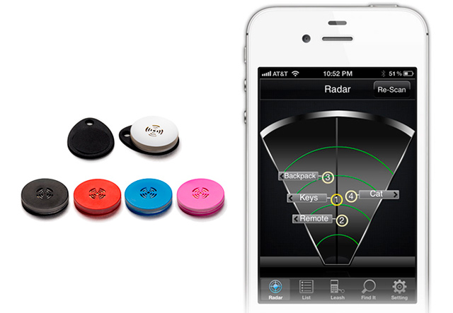 Můžete v ní nastavit režim až pro dvacet samolepek, ke kterým si přiřadíte individuální jména, jako například klíče, auto a podobně. Věci pak vyhledáte pomocí grafického radaru. Aplikace také umožňuje zobrazit poslední čas a místo na mapě, kde byla ztracená samolepka naposledy v dosahu telefonu. Také samolepky vám dohledají věci pouze do vzdálenosti 45 metrů. Čtyři samolepky pořídíte přibližně za 1500 korun.