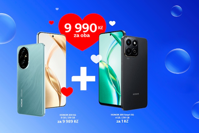 Pokud přemýšlíte o novém telefonu, v rámci valentýnské akce si můžete u O2 pořídit jeden pro sebe a další pro partnera nebo kamaráda. Ke smartphonu HONOR 200 5G 256GB za 9 989 Kč dostanete HONOR 200 Smart 5G 256GB za pouhou korunu. Oba telefony jsou k dispozici v zelené a černé barvě. Nabídku pak můžete využít buď v e-shopu O2, nebo v kamenných prodejnách.