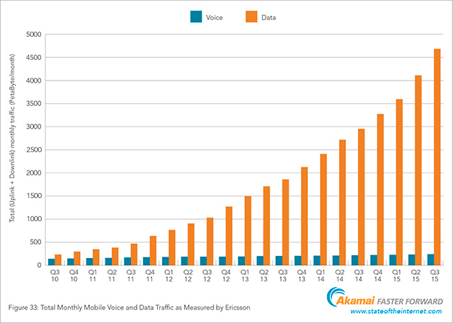Data zveřejněná agenturou Akamai jsou z třetího čtvrtletí roku 2015. Novější data zatím agentura naposkytla.