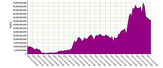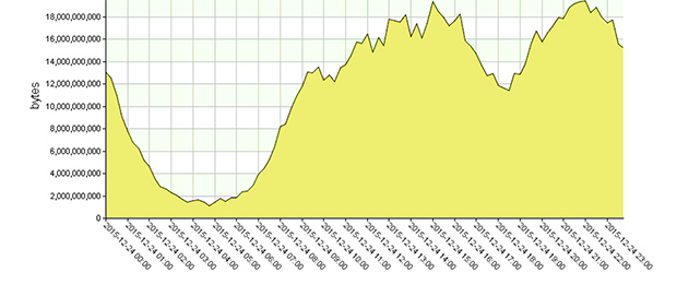 Datový provoz se zvýšil cca o 142 %, a to ve všech typech sítí. Největší nárůst zaznamenala nejrychlejší 4G LTE síť, kde se objem dat zvýšil o rekordních 1349 %. Lidé nejvíc datovali večer po nadílce, mezi 20:30 a 21:30.