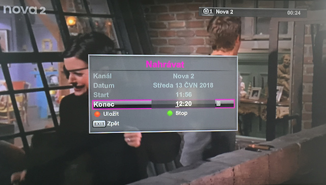 Obrovskou nevýhodou je, že v čas nahrávání se nemůžete mrknout na libovolný program. Musíte počkat, až se vám pořad nahraje anebo si vybrat ze seznamu aktivních programů, kterých je skutečně ale jenom pár, a zpravidla z jedné rodiny. Takže například když nahráváte z Nova Gold, budete moct přenout na Nova Cinema a Nova 2.