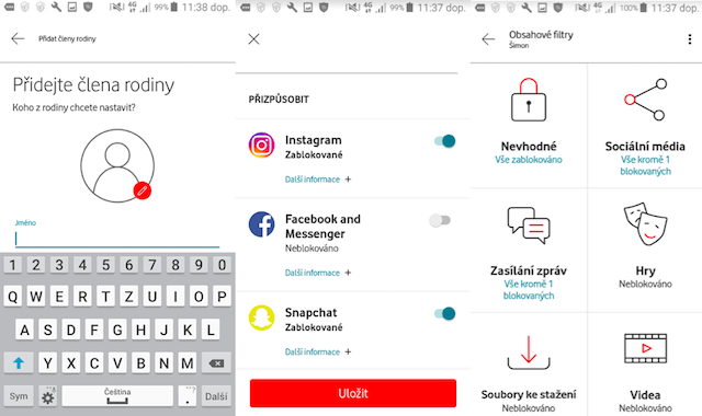 Vodafone proto ve spolupráci s Avastem vyvinul appku, která dokáže filtrovat a zakazovat jednotlivé stránky, aplikace nebo jejich skupiny (gambling, erotický obsah apod.) a nabízí i doporučené filtry pro různé věkové skupiny dětí. Rodiče s ní mohou i pozastavit přístup k internetu na dálku.