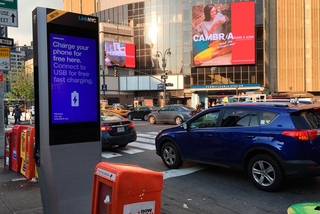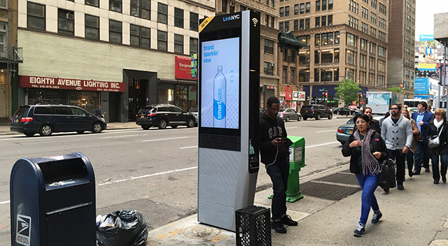 Stojany LinkNYC mají z obou stran reklamní obrazovky, které lákají kolemjdoucí k připojení nebo slouží jako inzerce. Právě reklama by měla celý projekt v dalších dvanácti letech zaplatit. Využívání městské Wi-Fi je totiž pro všechny zdarma.