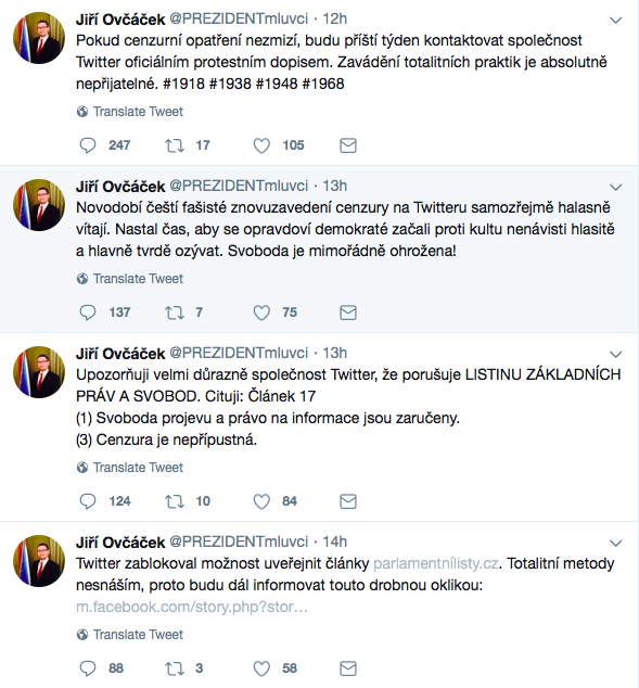 Zprávy o zodpovědnosti sociálních sítí a jejich dohledu na obsah nebyly jen prázdnými slovy. Josef Šlerka zveřejnil weby, jejichž odkazy Twitter ve svém feedu blokuje. Jelikož jde o weby jako parlamentnilisty.cz nebo vlasteneckenoviny.cz, budí zpráva o jejich blokování velkou nelibost.
