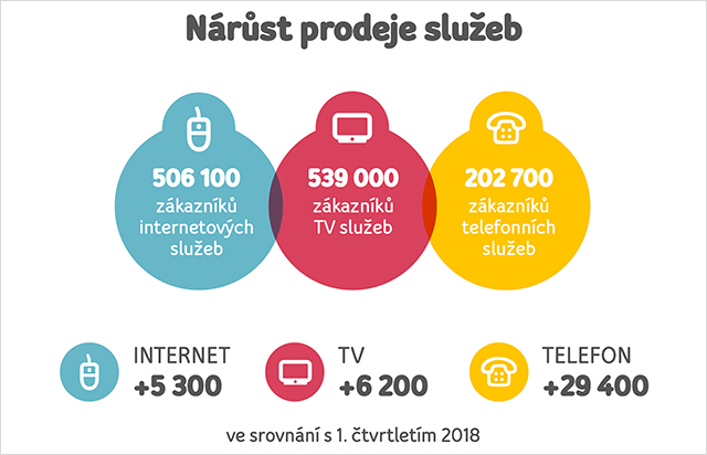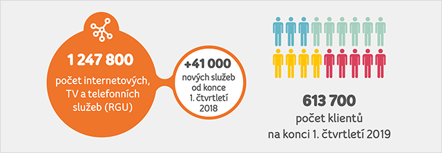 UPC se v prvním čtvrtletí roku 2019 dařilo. Nadále rozšiřovalo své širokopásmové sítě a investovalo do zkvalitňování služeb. Rostl také prodej ve všech segmentech a jeho základna se tak rozšířila o dalších 41 100 prodaných služeb v porovnání s prvním kvartálem roku 2018.