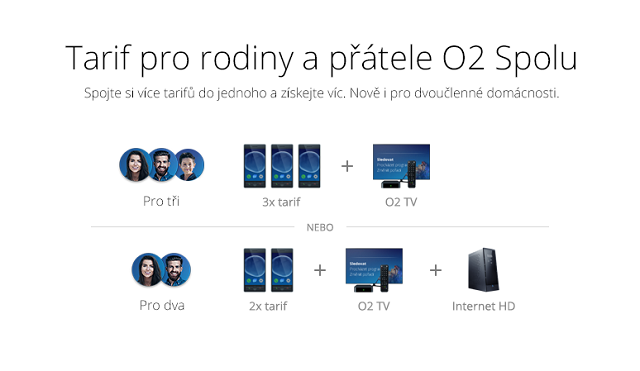 Od listopadu se těšte i na novou variantu skupinového balíčku O2 Spolu. I k těmto balíčkům si můžete přiobjednat větší objem dat, programovou nabídku O2 TV nebo rychlejší pevný internet. "O balíčky O2 Spolu, které jsme představili letos na jaře, je velký zájem. Třetina českých domácností je však dvoučlenná a chce mít všechny služby od jednoho operátora.“