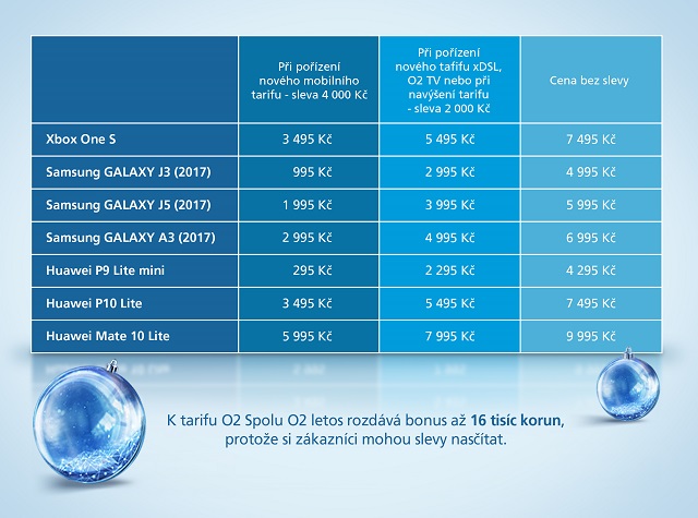 "Podle našeho průzkumu plánuje polovina domácností letos nakupovat vánoční dárky z oblasti elektroniky. Proto jsme se letos rozhodli zákazníkům nabídnout s výraznou slevou ke kterékoli z našich služeb nejen mobilní telefony, ale také herní konzoli. K balíčku O2 Spolu je možné získat vánoční bonus až 16 tisíc korun," popisuje Silvia Cieslarová, ředitelka mobilního segmentu v O2.