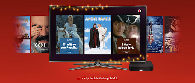 Červený operátor zároveň nabídne všem zákazníkům Vodafone TV a UPC TV 50 vánočních pohádek a filmů ve Videotéce zdarma. Tři oříšky pro Popelku a S čerty nejsou žerty si navíc budete moci pustit ve 4K rozlišení.