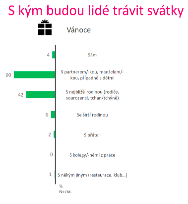 Štědrý večer tráví s přáteli jenom 2 % lidí, 4 % jsou v tento den bohužel doma sami. Myslíte, že někdo si nedá pokoj s prací ani na Vánoce? Podle odpovědí dotazovaných respondentů nebude na Štědrý den s kolegy nikdo.