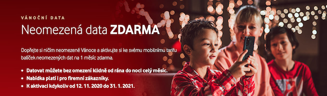 Vodafone se zaměřil na všechny zákazníky s aktivním měsíčním datovým balíčkem. Ti si mohou až do konce ledna na webu vyzvednout neomezená data.