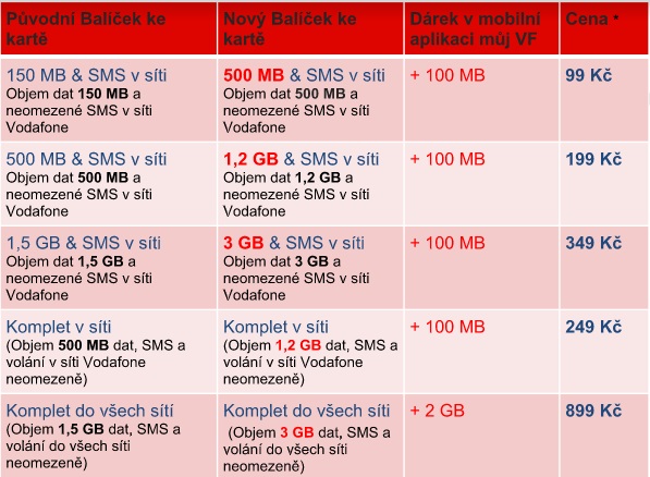 Operátor vám ztrojnásobil hodnotu dat, pokud máte kterýkoliv z Balíčků ke kartě – Data & SMS nebo některý z kombinovaných balíčků Komplet, které obsahují volání, data i SMS. Data si vyzvednete v mobilní aplikace Můj Vodafone jako dárek.