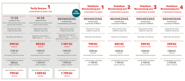 Vodafone zároveň snížil i cenu za jednu SIM kartu u dalších neomezených tarifů. Pokud si balíček koupíte jako skupina 3 nebo 4 lidí, každý z vás zaplatí jen 599 Kč.