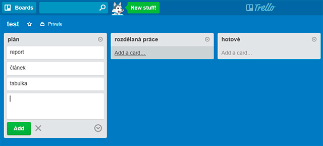 Trello mě opravdu zaujalo a doporučuji ho vyzkoušet všem, kteří mají rádi pořádek ve věcech, na kterých pracují. Tato služba vám i vašim kolegům dokáže ulehčit spoustu práce a dodá vašemu společnému projektu řád a přehled. Navíc se mi líbí, že je službu možné využívat zcela zdarma.
