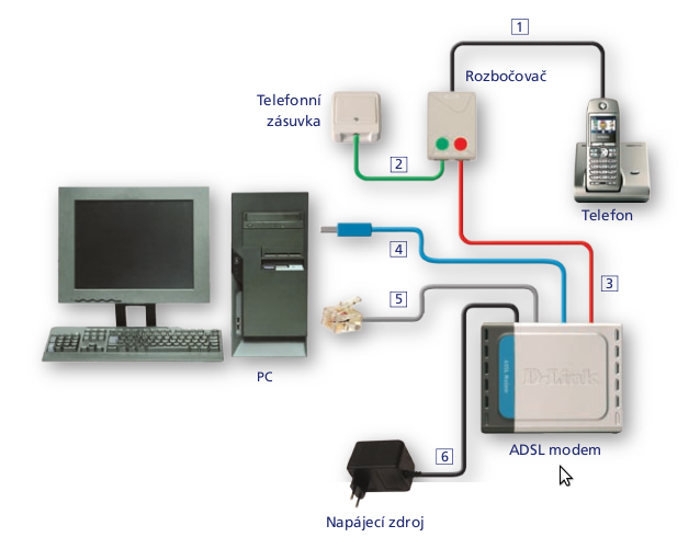 Máte-li doma pevnou linku, kterou stále používáte, bude muset nejdříve použít rozbočovač. Ten slouží k tomu, jak jsme před chvíli řekli, abyste na jedné telefonní lince mohli zároveň používat telefon i internetové připojení.