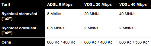 TIP: Kompletní přehledné nabídky ADSL/VDSL s podrobnými informacemi o cenách naleznete zde.